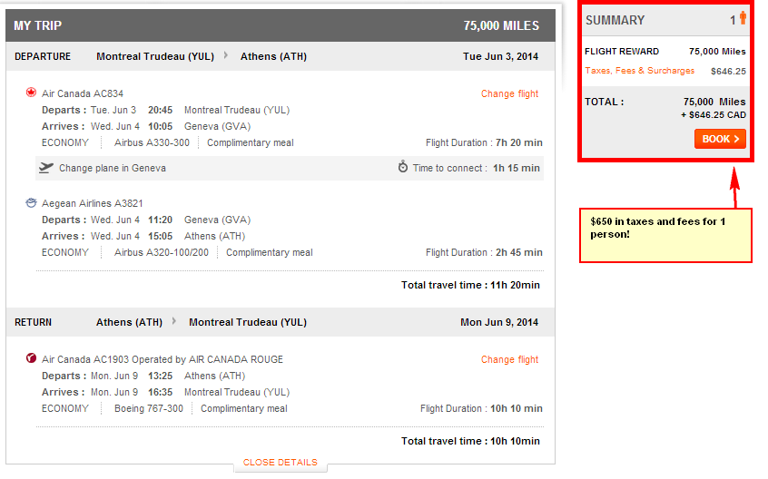 I talk about the Aeroplan taxes and fees in my series on Aeroplan basics here. If you are struggling with this portion of your trip, you can use my Award Travel Booking service.